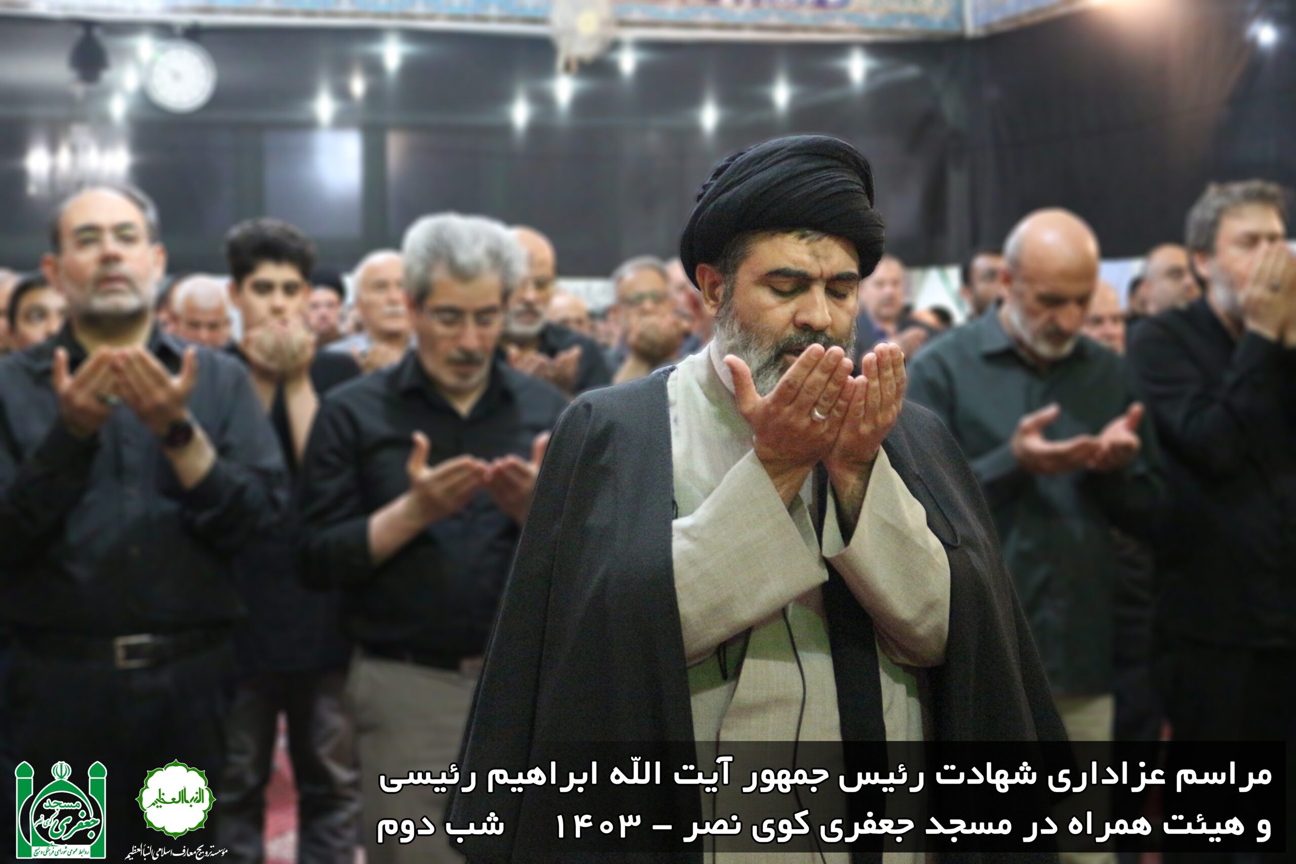 مراسم ترحیم و عزاداری در پی شهادت آیت الله رئیسی و همراهان در مسجد جعفری کوی نصر تهران