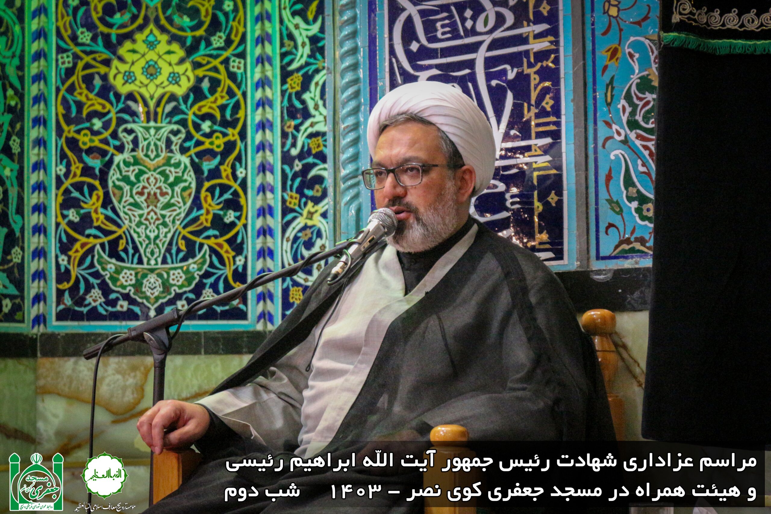 مراسم ترحیم و عزاداری بمناسبت شهادت آیت الله سید ابراهیم رئیسی و همراهان در مسجد جعفری کوی نصر تهران با حضور اقشار مختلف مردم و مسئولان شامگاه سه شنبه ۱ خرداد ماه ۱۴۰۳ برگزار شد.